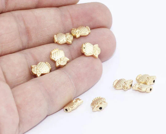 Matte Gold Plated Owl Pendant Owl Jewelry Spacer Bead Hole Diameter: 1.3 mm Dimensions: 8x10 mm. Package price. There are 5 products in 1 package. 24 carat gold plated on zinc. A Quality product resistant to rust and tarnishing. Do not contact with chemicals and perfumes for long-term use. It has passed all tests and does not contain materials harmful to health. Colors may vary depending on screen settings and ambient light.