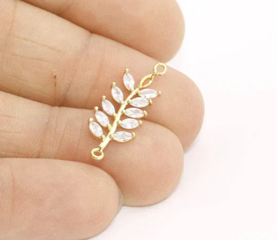 24 Carat Shiny Gold Plated Zircon Embroidered Leaf Pendant. Dimensions: 10x26mm Price is per piece. 24 carat gold plated on brass. A Quality product resistant to rust and tarnishing. Do not contact with chemicals and perfumes for long-term use. Passed all tests does not contain harmful materials. Colors may vary depending on screen settings and ambient light.