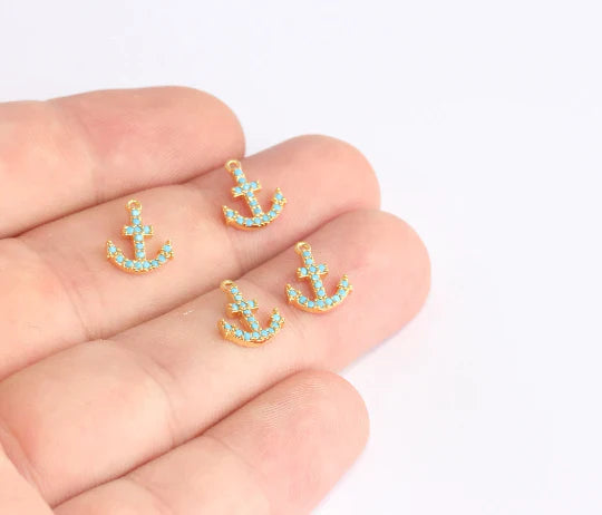 24 Carat Gold Plated Blue Zircon Stone Anchor Necklace Charms Anchor Pendant. Dimensions: 9x14mm Price is per piece. 24 carat gold plated on brass. A Quality product does not rust or tarnish. Do not contact with chemicals and perfumes for long-term use. Passed all tests does not contain harmful materials. Colors may vary depending on screen settings and ambient light.
