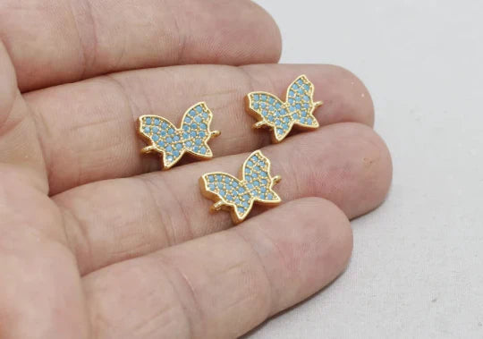 24 Carat Gold Plated Blue Zircon Stone Shiny Butterfly Charm Butterfly Pendant. Dimensions: 10x19mm Price is per piece. 24 carat gold plated on brass. A Quality product resistant to rust and tarnishing. Do not contact with chemicals and perfumes for long-term use. Passed all tests does not contain harmful materials. Colors may vary depending on screen settings and ambient light.