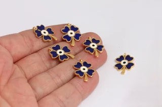 24k Gold Plated Flower Themed Evil Eye Beaded Necklace. Dimensions: 13x18mm Price is per piece. 24 carat gold plated on brass. A Quality product resistant to rust and tarnishing. Do not contact with chemicals and perfumes for long-term use. Passed all tests does not contain harmful materials. Colors may vary depending on screen settings and ambient light.