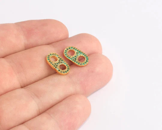 24K Gold Plated Green Zircon Stone Shiny Opener Charms Opener Pendant. Dimensions: 8x14mm Price is per piece. 24K gold plated on brass. A Quality product does not rust or tarnish. Do not contact with chemicals and perfumes for long-term use. Passed all tests does not contain harmful materials. Colors may vary depending on screen settings and ambient light.