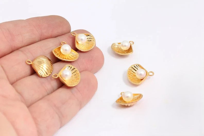 24 Carat Gold Plated Pearl Sea Shell Charm. Dimensions: 16x16mm Price is per piece. 24 carat gold plated on brass. A Quality product resistant to rust and tarnishing. For long-term use do not contact with chemicals and perfumes. Passed all tests does not contain harmful materials. Colors may vary depending on screen settings and ambient light.
