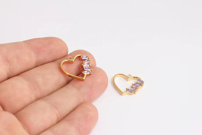 24K Gold Plated Purple Zircon Stone Shiny Heart Charms Heart Pendant. Dimensions: 18x20mm Price is per piece. 24K gold plated on brass. A Quality product resistant to rust and tarnishing. Do not contact with chemicals and perfumes for long-term use. Passed all tests does not contain harmful materials. Colors may vary depending on screen settings and ambient light.
