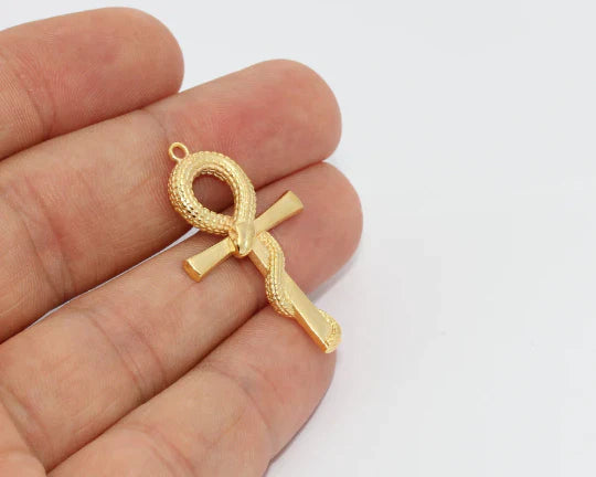 24 Carat Gold Plated Snake Cross Snake Ankh Pendant. Dimensions: 21x35mm Price is per piece. 24 carat gold plated on brass. A Quality product resistant to rust and tarnishing. Do not contact with chemicals and perfumes for long-term use. Passed all tests does not contain harmful materials. Colors may vary depending on screen settings and ambient light.