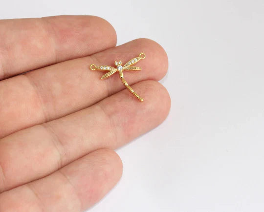 24K Gold Plated White Zircon Stone Shiny Dragonfly Charms Dragonfly Pendant. Dimensions: 18x22mm Price is per piece. 24K gold plated on brass. A Quality product does not rust or tarnish. Do not contact with chemicals and perfumes for long-term use. Passed all tests does not contain harmful materials. Colors may vary depending on screen settings and ambient light.