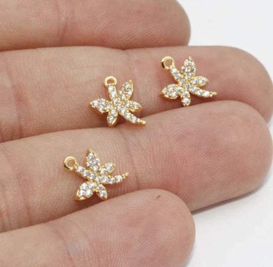 24K Gold Plated White Zircon Stone Shiny Dragonfly Charms Dragonfly Pendant. Dimensions: 8x11mm Price is per piece. 24K gold plated on brass. A Quality product does not rust or tarnish. Do not contact with chemicals and perfumes for long-term use. Passed all tests does not contain harmful materials. Colors may vary depending on screen settings and ambient light.