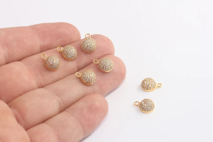 24K Gold Plated White Zircon Stone Shiny Drop Charms Drop Pendant. Dimensions: 8.5x11mm Price is per piece. 24K gold plated on brass. A Quality product does not rust or tarnish. Do not contact with chemicals and perfumes for long-term use. Passed all tests does not contain harmful materials. Colors may vary depending on screen settings and ambient light.