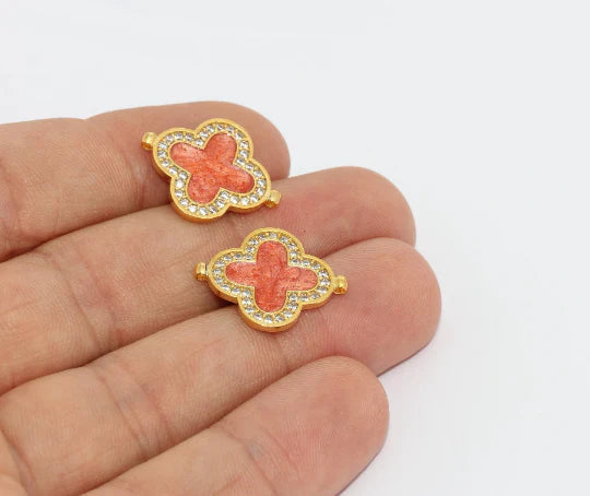 24k Gold Plated White Zircon Stone Orange Clover Charms KUZ1307