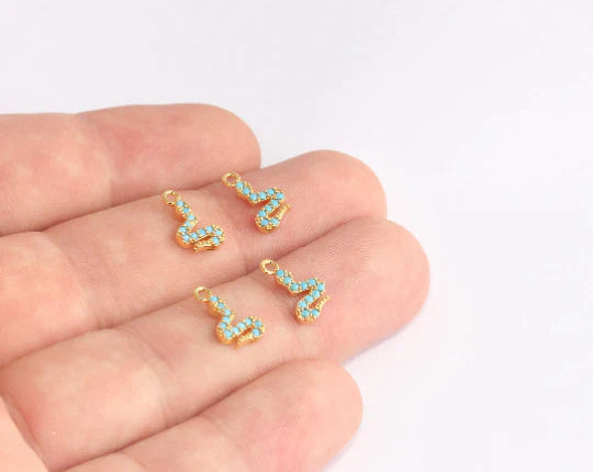 24 Carat Gold Plated Zircon Stone Blue Shiny Snake Charm Snake Pendant. Dimensions: 7x12mm Price is per piece. 24 carat gold plated on brass. A Quality product does not rust or tarnish. Do not contact with chemicals and perfumes for long-term use. Passed all tests does not contain harmful materials. Colors may vary depending on screen settings and ambient light.