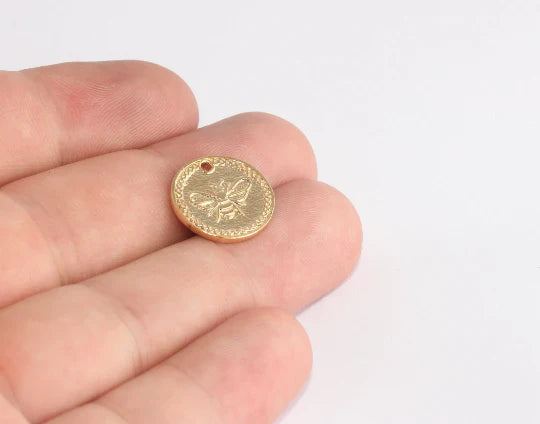 Shiny Gold Plated Bee Figured Round Pendant Bee Pendant Dimensions: 16mm Price is per piece. 24 carat gold plated on brass. A quality product resistant to rust and tarnishing. Do not contact with chemicals and perfumes for long-term use. It has passed all tests and does not contain materials harmful to health. Colors may vary depending on screen settings and ambient light.
