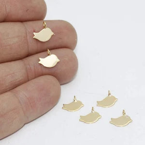 Shiny Gold Plated Bird Pendant Dangle Pendant Dimensions: 9x10mm. Package price. There are 5 products in 1 package. 24 carat gold plated on brass. A Quality product resistant to rust and tarnishing. Do not contact with chemicals and perfumes for long-term use. Passed all tests does not contain harmful materials. Colors may vary depending on screen settings and ambient light.