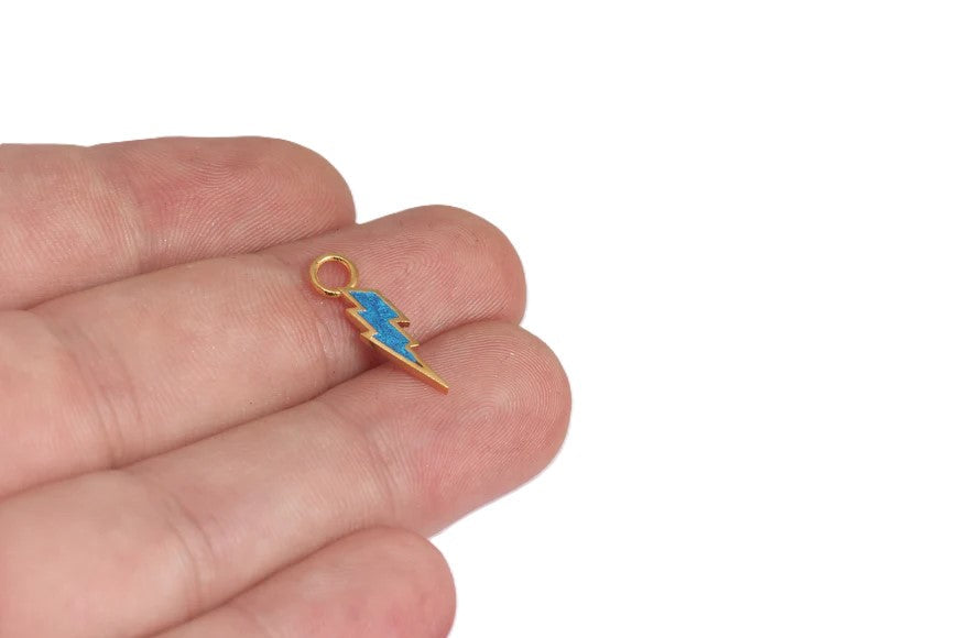 Shiny Gold Plated Blue Enameled Lightning Bolt Pendant Dimensions: 5x20mm. Package price. There are 5 products in 1 package. 24 carat gold plated on brass. A Quality product resistant to rust and tarnishing. Do not contact with chemicals and perfumes for long-term use. Passed all tests does not contain harmful materials. Colors may vary depending on screen settings and ambient light.