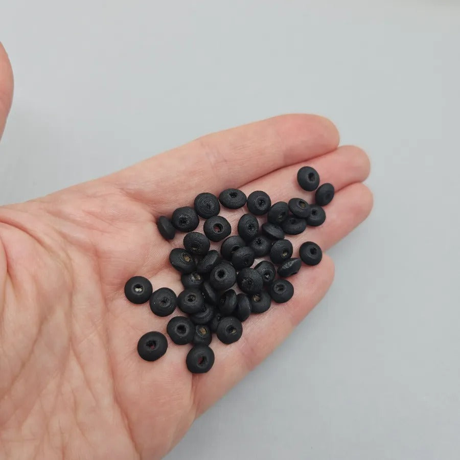 Black wooden bead. The package contains approximately 180 beads. Colors may vary according to monitor and light settings. Wooden beads can be used in accessory designs such as necklaces bracelets earrings keychains and in hobbies such as macrame decorative items etc.