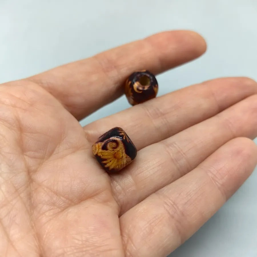 11mm Banded Patterned Dark Brown Cube Wooden Bead WB0179