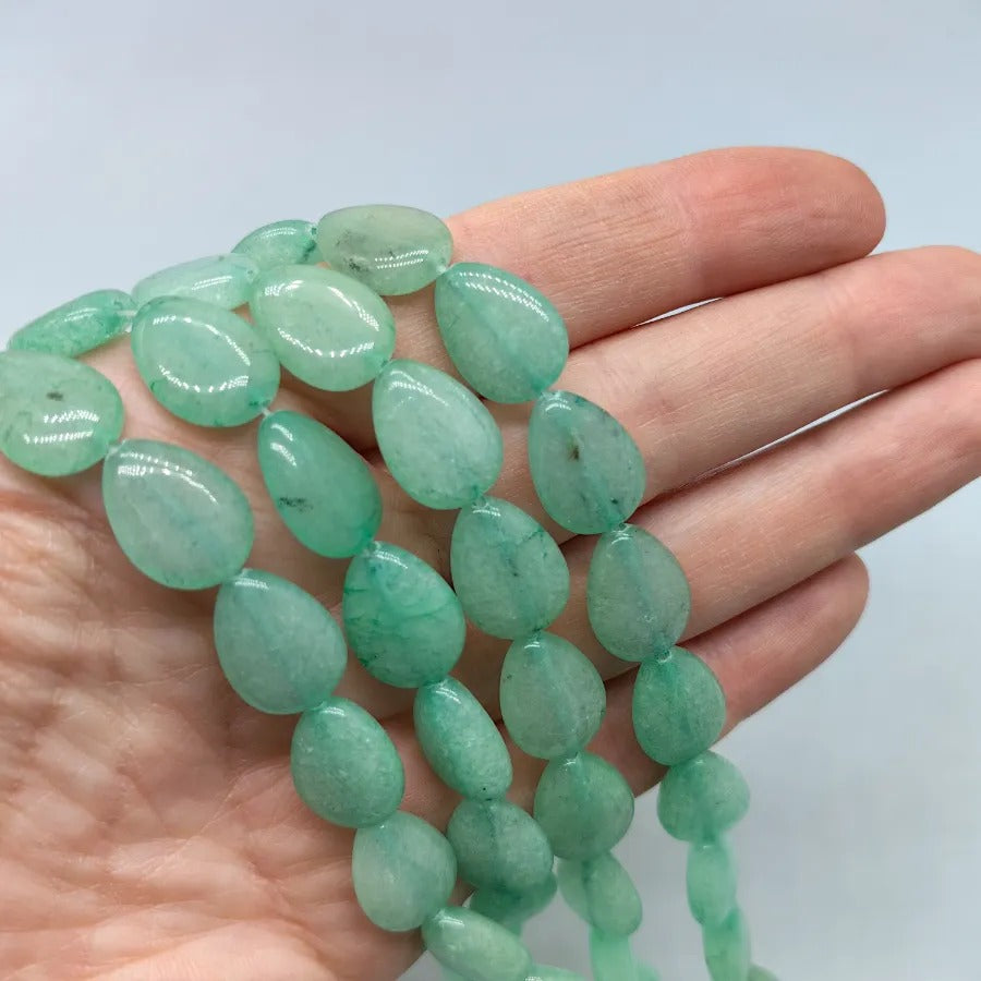 12 x 16 mm Drop Ceyt Aventurine Quartz Stone. Price is for the strand. Each strand contains approximately 32 stones. Natural stones may have different patterns veins and colors depending on their source. Colors may vary slightly due to lighting and camera settings.