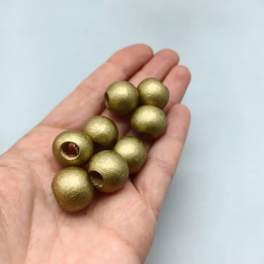 Gold color wooden bead. The package contains approximately 12-14 beads. Colors may vary according to monitor and light settings. Wooden beads can be used in accessory designs such as necklaces bracelets earrings keychains and in hobbies like macrame decorative items etc.