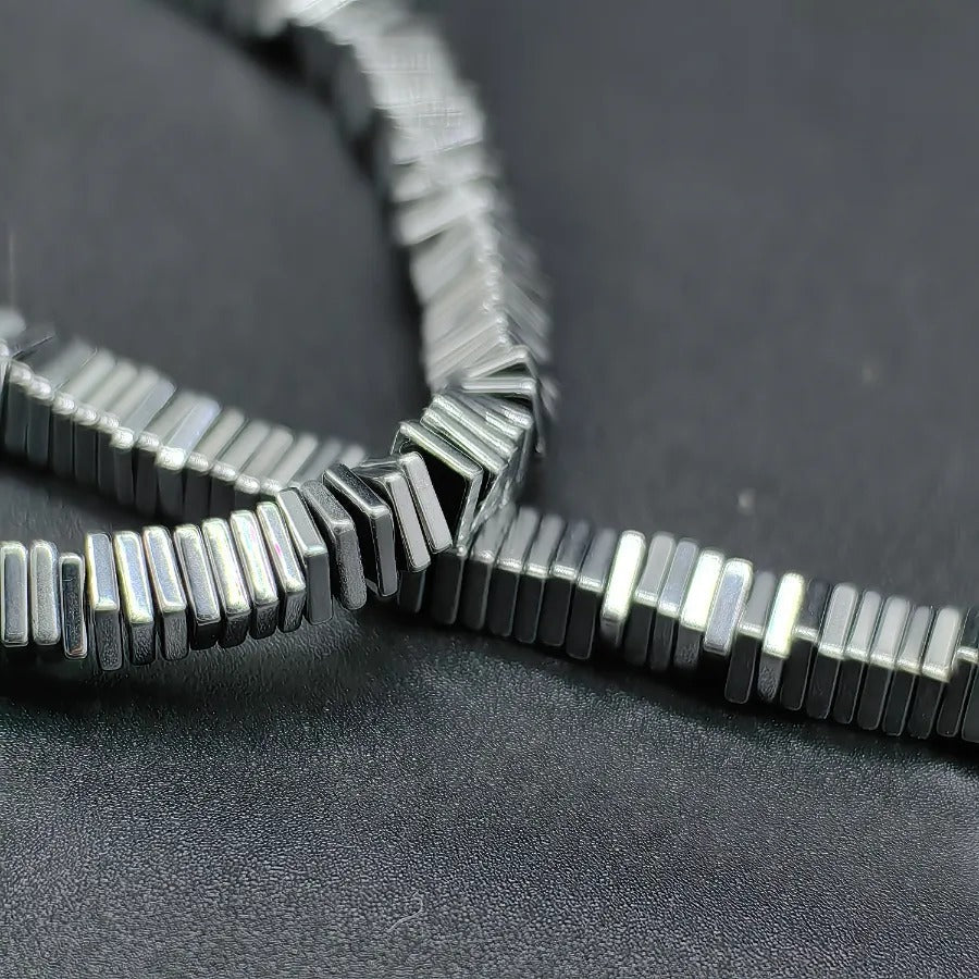 4 mm Silver Color Thin Square Cut Hematite Natural Stone.Dimensions: 4 mm.Sold in strands.Each strand contains approximately 410 hematite stones.It is a natural hematite stone.Hematite is a shiny natural stone with a metallic appearance, believed to affect the root chakra.It is thought to provide energy, courage, and joy to the user while relieving stress.Hematite stones can be used in the design of bracelets, necklaces, and earrings.