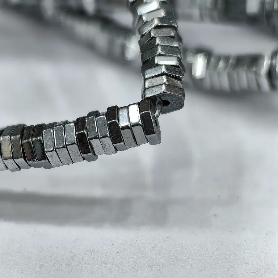 4 mm Silver Color Threaded Cut Hematite Natural Stone.Dimensions: 4 mm x 1 mm.Sold in strands.Each strand contains approximately 370 hematite stones.It is a natural hematite stone.Hematite is a shiny natural stone with a metallic appearance, believed to affect the root chakra.It is thought to provide energy, courage, and joy to the user while relieving stress.Hematite stones can be used in the design of bracelets, necklaces, and earrings.