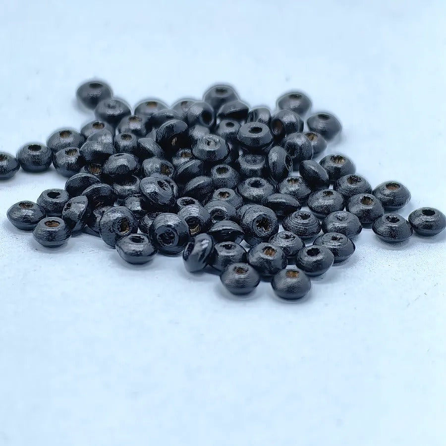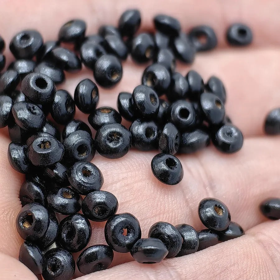 Black wooden bead. The package contains approximately 300 beads. Colors may vary according to monitor and light settings. Wooden beads can be used in accessory designs such as necklaces bracelets earrings keychains and in hobbies like macrame decorative items etc.