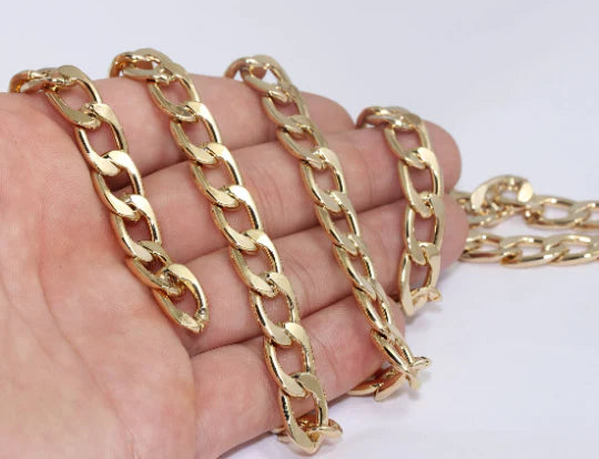 24 Carat Gold Plated 16mm Thick Rope Border Chain. Dimensions: 10x16mm PRICE FOR 1 METER. 24 carat gold plated on brass. A Quality product resistant to rust and tarnishing. Do not contact with chemicals and perfumes for long-term use. Passed all tests does not contain harmful materials. Colors may vary depending on screen settings and ambient light.