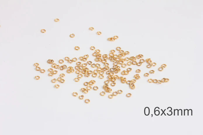24 Carat Gold Plated Necklace, Anklet, Bracelet Shiny Tiny Metal Ring, Metal Ring. Sold in packages of 50 pieces. Dimensions: 3mm Thickness: 0.6mm. 24 carat gold plated on brass. A Quality product, resistant to rust and tarnishing. Do not contact with chemicals and perfumes for long-term use. Passed all tests, does not contain harmful materials. Colors may vary depending on screen settings and ambient light.
