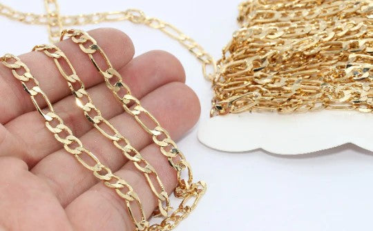 24 Carat Gold Plated Oval Link Crushed Border Chain. Dimensions: 5.3 mm PRICE FOR 1 METER. 24 carat gold plated on brass. A Quality product resistant to rust and tarnishing. Do not contact with chemicals and perfumes for long-term use. Passed all tests does not contain harmful materials. Colors may vary depending on screen settings and ambient light.
