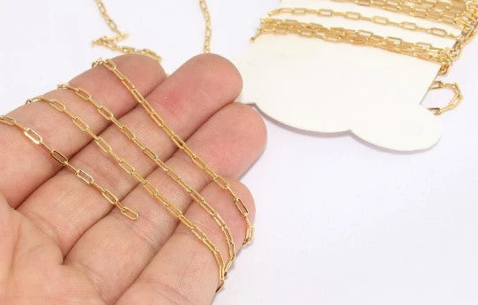 24 Carat Gold Plated Paperclip Chain. Dimensions: 2.2x5.2 mm PRICE FOR 1 METER. 24 carat gold plated on brass. A Quality product resistant to rust and tarnishing. Do not contact with chemicals and perfumes for long-term use. Passed all tests does not contain harmful materials. Colors may vary depending on screen settings and ambient light.