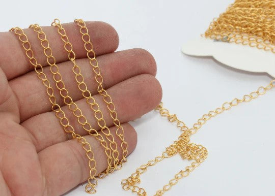 24 Carat Gold Plated Matt Extension Chain. Dimensions: 3.5 mm PRICE FOR 1 METER. 24 carat gold plated on brass. A Quality product resistant to rust and tarnishing. Do not contact with chemicals and perfumes for long-term use. Passed all tests does not contain harmful materials. Colors may vary depending on screen settings and ambient light.
