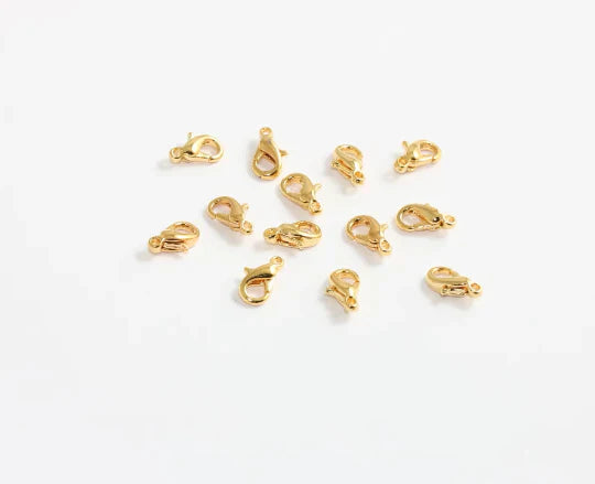 24 Carat Gold Plated Necklace, Anklet, Bracelet 9 mm Shiny Parrot Clip, Parrot Clip. There are 10 products in 1 package. Dimensions: 9 mm. 24 carat gold plated on brass. A Quality product, resistant to rust and tarnishing. Do not contact with chemicals and perfumes for long-term use. Passed all tests, does not contain harmful materials. Colors may vary depending on screen settings and ambient light.