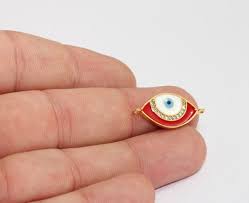 24 Carat Gold Plated Red Enameled Zircon Stone Eye Charm. Dimensions: 28x36mm Price is per piece. 24 carat gold plated on brass. A Quality product resistant to rust and tarnishing. Do not contact with chemicals and perfumes for long-term use. Passed all tests does not contain harmful materials. Colors may vary depending on screen settings and ambient light.
