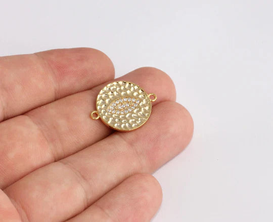 24K Gold Plated White Zircon Stone Eye Patterned Round Charms Eye Patterned Round Pendant. Dimensions: 19x25mm Price is per piece. 24K gold plated on brass. A Quality product resistant to rust and tarnishing. Do not contact with chemicals and perfumes for long-term use. Passed all tests does not contain harmful materials. Colors may vary depending on screen settings and ambient light.