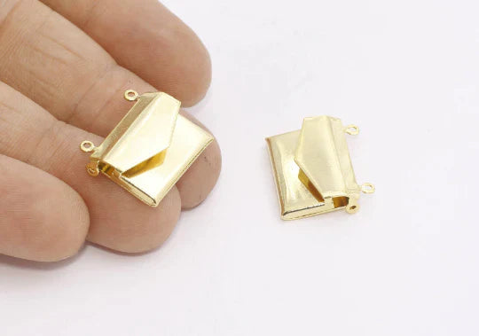 24 Carat Shiny Gold Plated Envelope Pendant. Dimensions: 17x21mm Price is per piece. 24 carat gold plated on brass. A Quality product resistant to rust and tarnishing. For long-term use do not contact with chemicals and perfumes. Passed all tests does not contain harmful materials. Colors may vary depending on screen settings and ambient light.