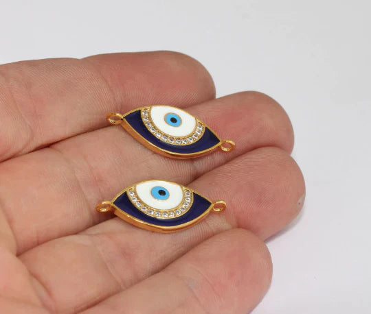 24 Carat Shiny Gold Plated Eye Shaped Evil Eye Necklace. Dimensions: 12x26mm Price is per piece. 24 carat gold plated on brass. A Quality product resistant to rust and tarnishing. Do not contact with chemicals and perfumes for long-term use. Passed all tests does not contain harmful materials. Colors may vary depending on screen settings and ambient light.
