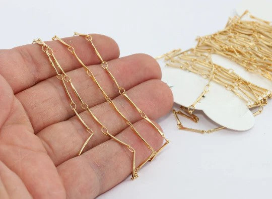 24K Gold Plated Soldered Linked Link Chain. Dimensions: 1x11mm PRICE FOR 1 METER. 24K gold plated on brass. A Quality product resistant to rust and tarnishing. Do not contact with chemicals and perfumes for long-term use. Passed all tests does not contain harmful materials. Colors may vary depending on screen settings and ambient light.