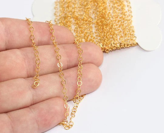 24 Carat Gold Plated Soldered Rollo Chain. Dimensions: 3mm PRICE FOR 1 METER. 24 Carat gold plated on brass. A Quality product resistant to rust and tarnishing. Do not contact with chemicals and perfumes for long-term use. Passed all tests does not contain harmful materials. Colors may vary depending on screen settings and ambient light.