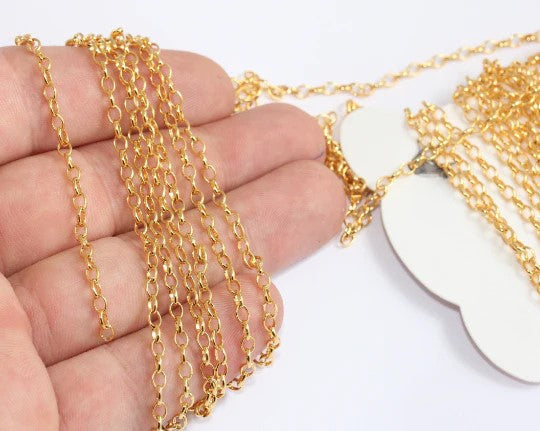 24 Carat Gold Plated Soldered Small Link Chain. Dimensions: 2.8x4mm PRICE FOR 1 METER. 24 Carat gold plated on brass. A Quality product resistant to rust and tarnishing. Do not contact with chemicals and perfumes for long-term use. Passed all tests does not contain harmful materials. Colors may vary depending on screen settings and ambient light.