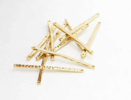 24k Gold Plated Bar Double Hole Jewelry Piece. Dimensions: 48mm Price for 5 Pieces. 24 carat gold plated on brass. A Quality product, resistant to rust and tarnishing. Do not contact with chemicals and perfumes for long-term use. Passed all tests, does not contain harmful materials. Colors may vary depending on screen settings and ambient light.