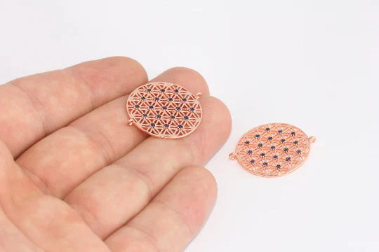 24K Gold Plated Blue Zircon Stone Shiny Round Charms Round Pendant. Dimensions: 25mm Price is per piece. 24K gold plated on brass. A Quality product resistant to rust and tarnishing. Do not contact with chemicals and perfumes for long-term use. Passed all tests does not contain harmful materials. Colors may vary depending on screen settings and ambient light.
