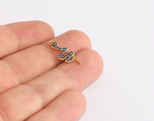 24K Gold Plated Blue Zircon Stone Shiny Snake Charm Snake Pendant. Dimensions: 8x23mm Price is per piece. 24K gold plated on brass. A Quality product resistant to rust and tarnishing. Do not contact with chemicals and perfumes for long-term use. Passed all tests does not contain harmful materials. Colors may vary depending on screen settings and ambient light.