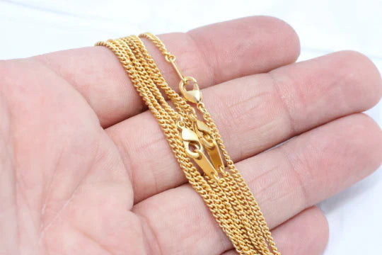24K Gold Plated 40cm, Border Ready Chain. Dimensions: 2mmx2.4mm - Price per piece. 24K gold plated on brass. A Quality product, resistant to rust and tarnishing. Do not contact with chemicals and perfumes for long-term use. Passed all tests, does not contain harmful materials. Colors may vary depending on screen settings and ambient light.