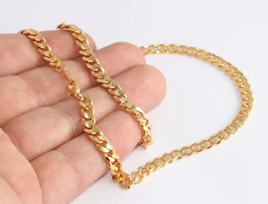24K Gold Plated Shiny, 43cm, Border Ready Chain. Dimensions: 4.5mm - Price per piece. 24K gold plated on brass. A Quality product, resistant to rust and tarnishing. Do not contact with chemicals and perfumes for long-term use. Passed all tests, does not contain harmful materials. Colors may vary depending on screen settings and ambient light.