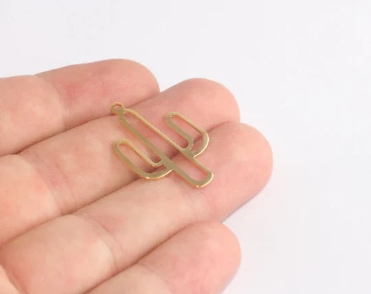 24 Carat Gold Plated Cactus Charm Cactus Pendant. Dimensions: 20x30mm Price is per piece. 24 carat gold plated on brass. A Quality product resistant to rust and tarnishing. For long-term use do not contact with chemicals and perfumes. Passed all tests does not contain harmful materials. Colors may vary depending on screen settings and ambient light.