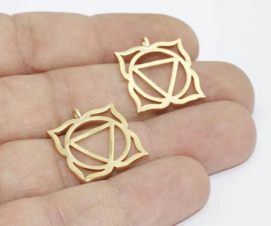 24 Carat Gold Plated Chakra Charms Chakra Yoga Pendant. Dimensions: 19x21mm Price is per piece. 24 carat gold plated on brass. A Quality product resistant to rust and tarnishing. Do not contact with chemicals and perfumes for long-term use. Passed all tests does not contain harmful materials. Colors may vary depending on screen settings and ambient light.