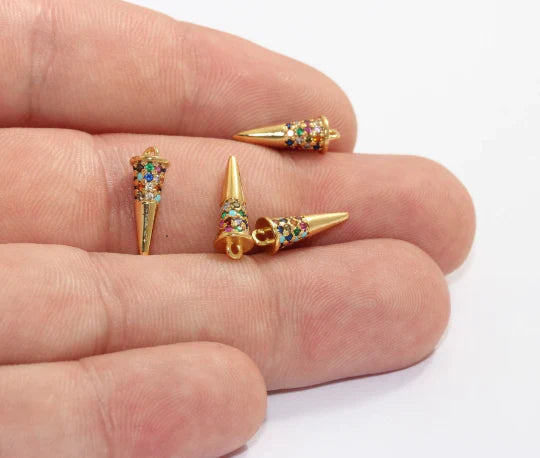 24K Gold Plated Colorful Zircon Stone Shiny Screw Charms Screw Necklace Pendant. Dimensions: 5.5x15mm Price is per piece. 24K gold plated on brass. A Quality product does not rust or tarnish. Do not contact with chemicals and perfumes for long-term use. Passed all tests does not contain harmful materials. Colors may vary depending on screen settings and ambient light.