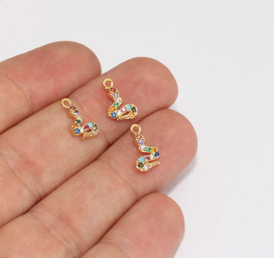 24K Gold Plated Colorful Zircon Stone Shiny Snake Charms Snake Pendant. Dimensions: 7x12mm Price is per piece. 24K gold plated on brass. A Quality product does not rust or tarnish. Do not contact with chemicals and perfumes for long-term use. Passed all tests does not contain harmful materials. Colors may vary depending on screen settings and ambient light.