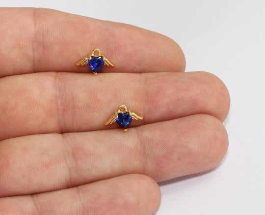 24 Carat Gold Plated Navy Blue Zircon Stone Angel Charms Angel Pendant. Dimensions: 8x13mm Price is per piece. 24 carat gold plated on brass. A Quality product does not rust or tarnish. Do not contact with chemicals and perfumes for long-term use. Passed all tests does not contain harmful materials. Colors may vary depending on screen settings and ambient light.