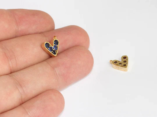 24 Carat Gold Plated Dark Blue Zircon Stone Shiny Heart Charms Heart Pendant. Dimensions: 10 mm Price is per piece. 24 carat gold plated on brass. A Quality product does not rust or tarnish. Do not contact with chemicals and perfumes for long-term use. Passed all tests does not contain harmful materials. Colors may vary depending on screen settings and ambient light.