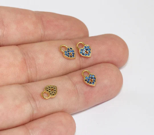 24 Carat Gold Plated Dark Blue Zircon Stone Shiny Heart Charms Heart Pendant. Dimensions: 6x9mm Price is per piece. 24 carat gold plated on brass. A Quality product does not rust or tarnish. Do not contact with chemicals and perfumes for long-term use. Passed all tests does not contain harmful materials. Colors may vary depending on screen settings and ambient light.