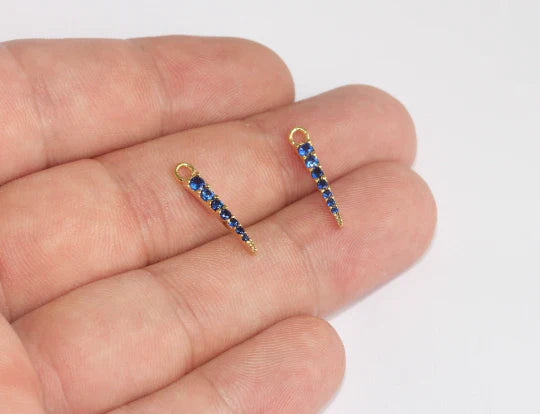 24 Carat Gold Plated Navy Blue Zircon Stone Needle Charms Needle Necklace Pendant. Dimensions: 3.5x20mm Price is per piece. 24 carat gold plated on brass. A Quality product does not rust or tarnish. Do not contact with chemicals and perfumes for long-term use. Passed all tests does not contain harmful materials. Colors may vary depending on screen settings and ambient light.